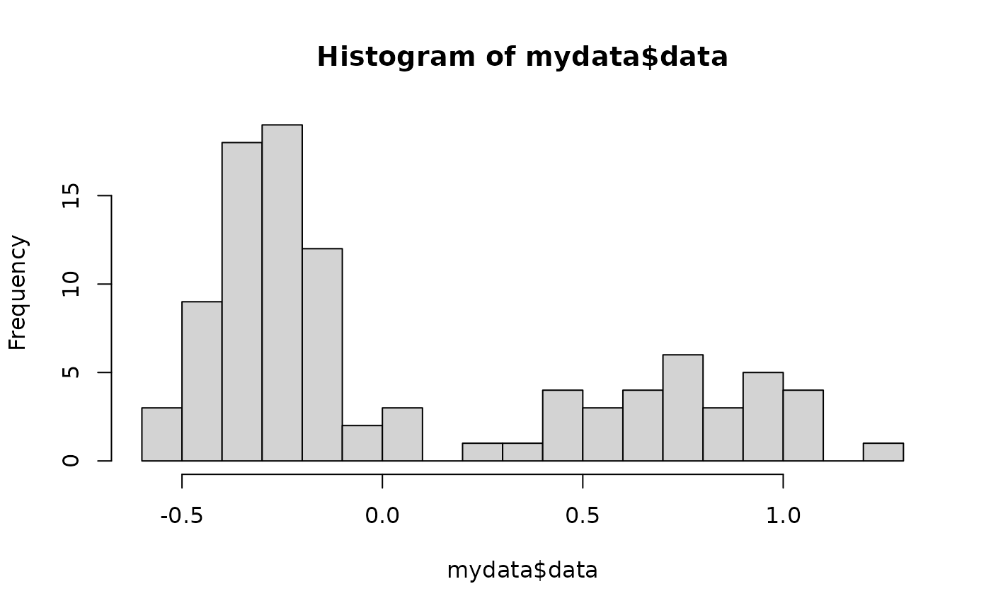 Your dataset specified as "DatasetName$ColumnName" or converted to a numeric list with a name (e.g., "yourrawdata <- as.numeric(yourrawdata$columnname)"). Regardless of how you import or specify it, data should be a single column of log-transformed data.